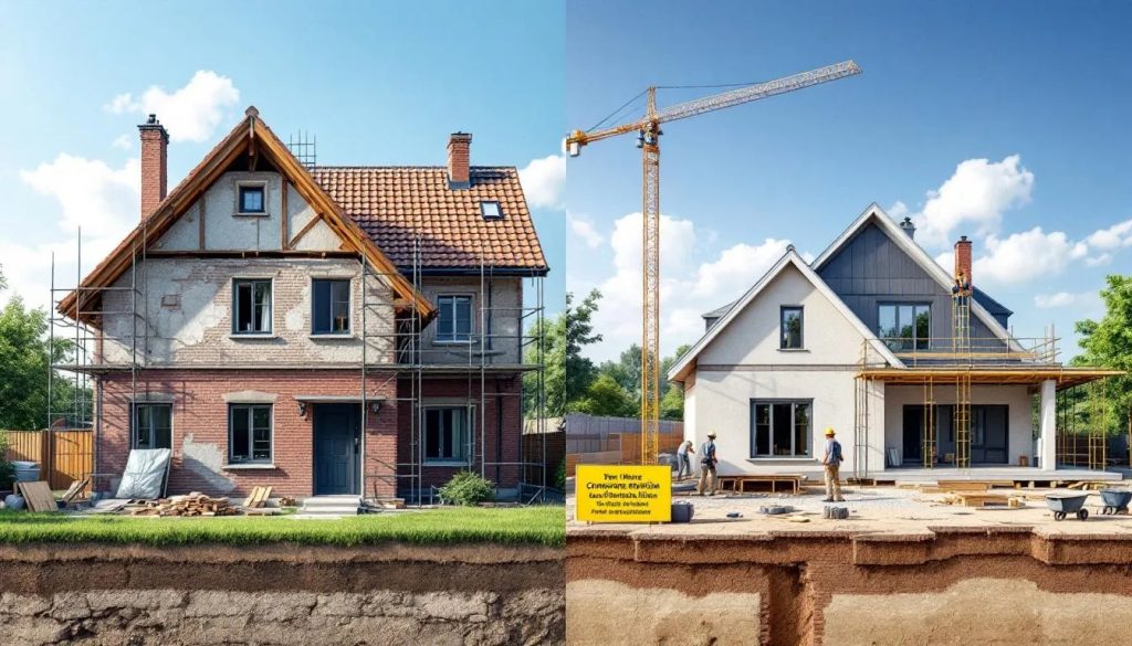 Kada se vaga između rušenja stare kuće i gradnje nove, treba uračunati i trošak rušenja/demontaže starog objekta i odvoženja šuta. To jeste dodatni trošak i zahteva takođe odobrenje (dozvolu za rušenje) i angažovanje ekipe koja će bezbedno ukloniti postojeću kuću. Tek nakon raščišćavanja terena može se krenuti u temelje novog doma. U nekim slučajevima investitori pokušavaju da sačuvaju deo stare kuće kako bi formalno to vodili kao “rekonstrukciju” (što prolazi kroz jednostavniju proceduru) umesto novogradnje – ali to može biti mač sa dve oštrice ako ostavljeni delovi nisu strukturno pouzdani.